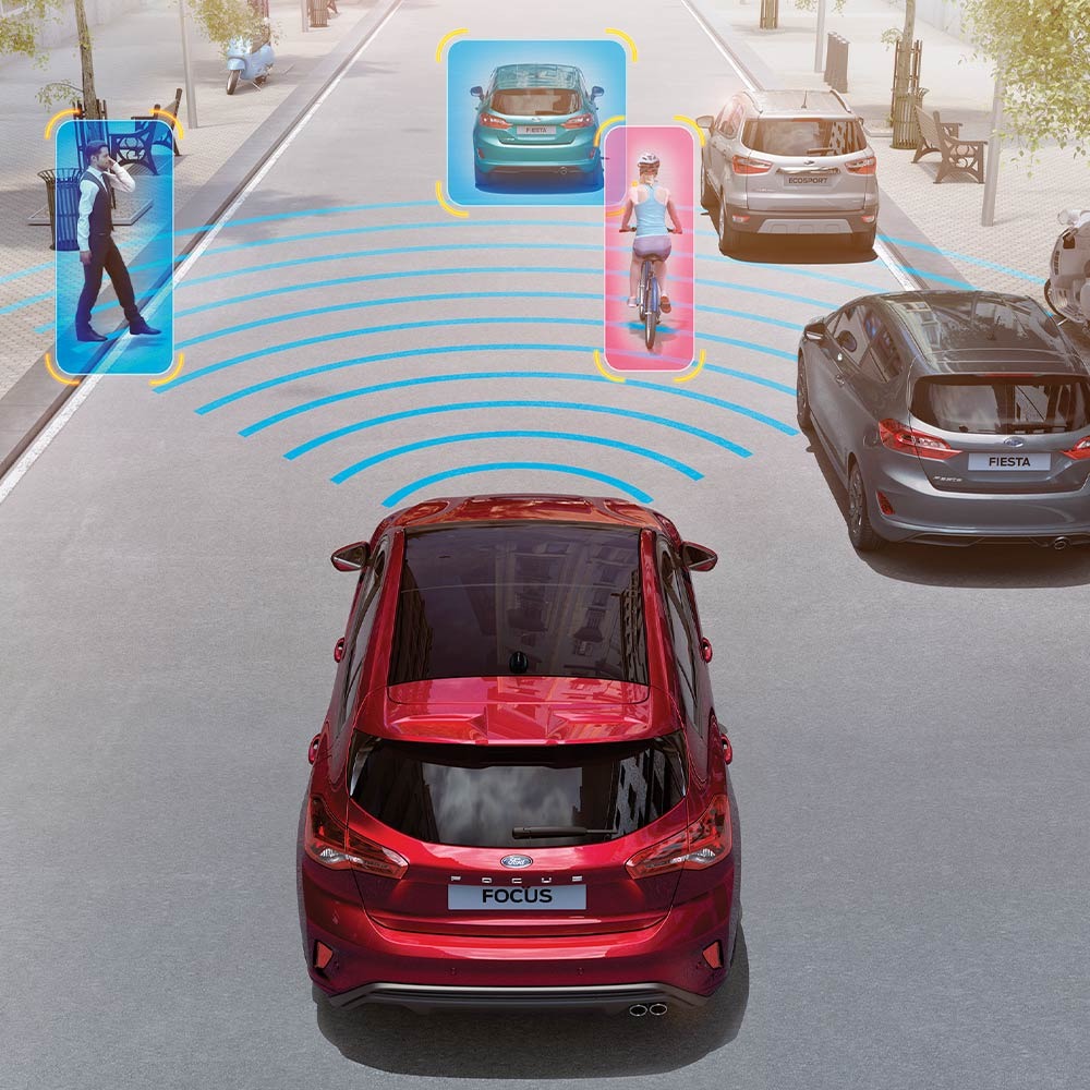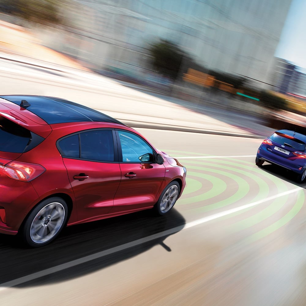 Contribuisce ad aumentare la consapevolezza durante le manovre di retromarcia in spazi con scarsa visibilità. Il sistema rileva se un veicolo si sta avvicinando dai lati, quindi emette un avviso e accende una spia nello specchietto retrovisore della portiera della tua Focus per segnalare la loro presenza.