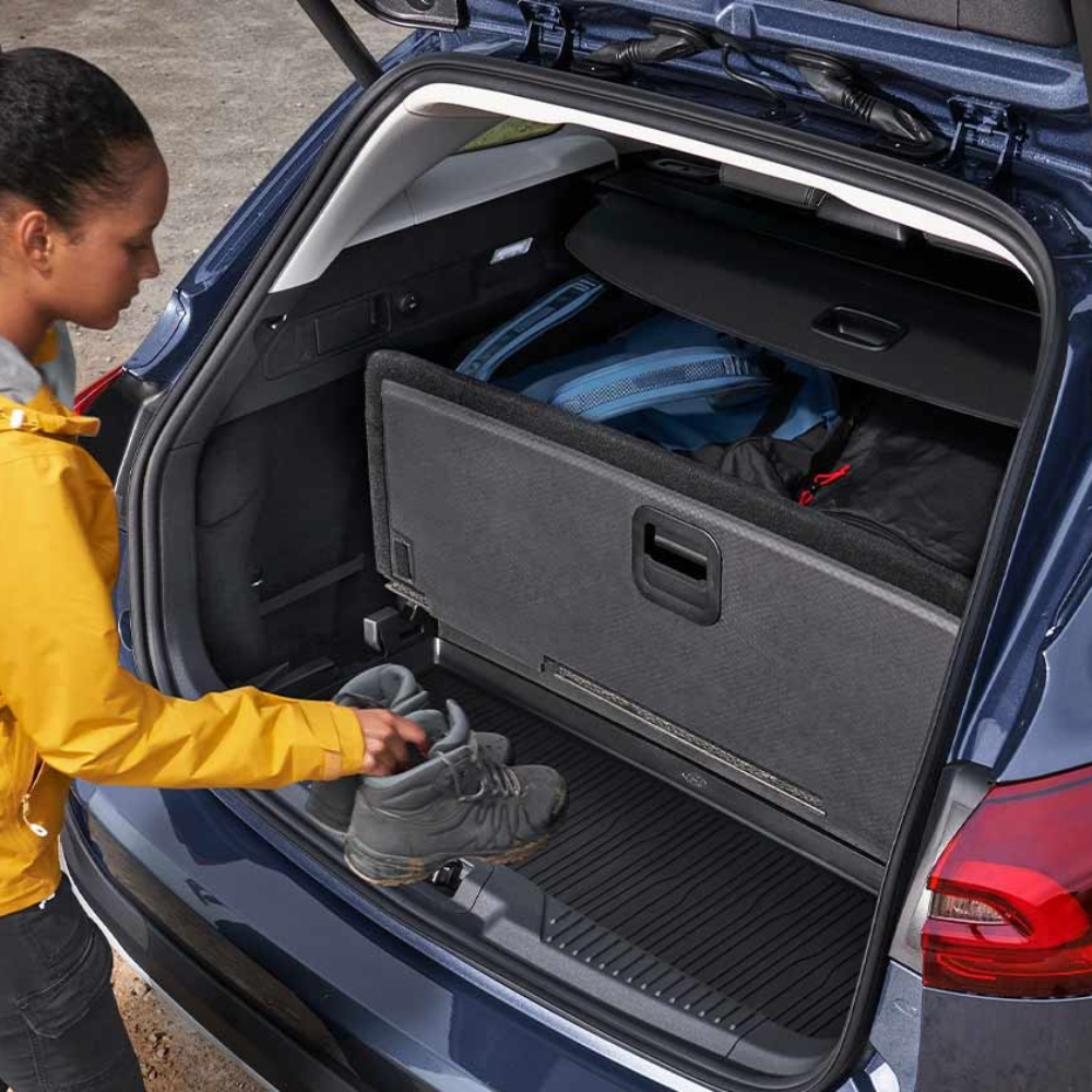 Il piano di carico della Ford Focus Wagon è dotato di un divisorio verticale e di una zona per oggetti bagnati con tappetino in gomma*, che consente di trasportare separatamente gli oggetti bagnati o sporchi.