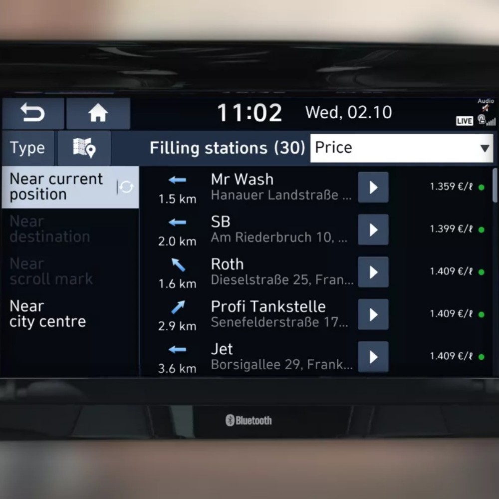 Il sistema di monitoraggio del prezzo del carburante è costantemente aggiornato e ti permette di trovare la stazione di servizio più conveniente vicino a te ed impostarla come destinazione con un semplice tap.
