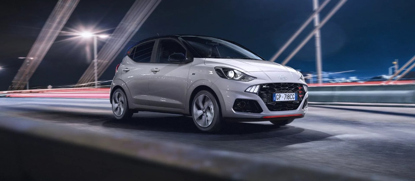 Lo stile dinamico di i10 N Line è sottolineato dal paraurti sportivo e dall’esclusiva griglia N Line con dettagli rossi.