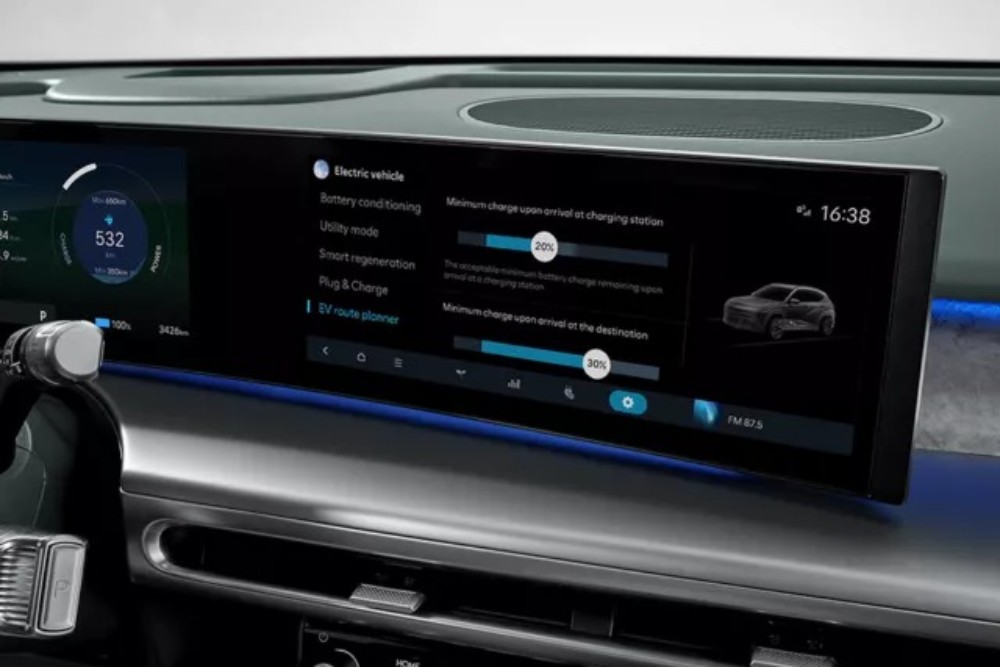 Il sofisticato abitacolo è caratterizzato da elementi ellittici e tonalità pacate per un'atmosfera rilassante, esaltata dal display panoramico curvo, dal cruscotto fluttuante e dalle bocchette d'aria super sottili.