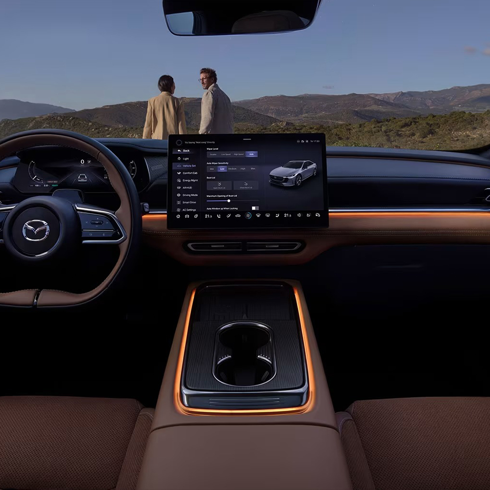 Per migliorare ulteriormente la tua esperienza di guida, Nuova Mazda6e integra nel suo abitacolo minimalista tecnologie avanzate che si fondono perfettamente e con discrezione, potenziando le sensazioni di controllo, comfort e piacere di guida.