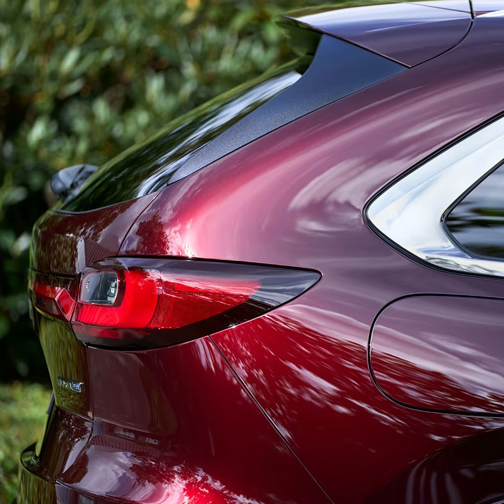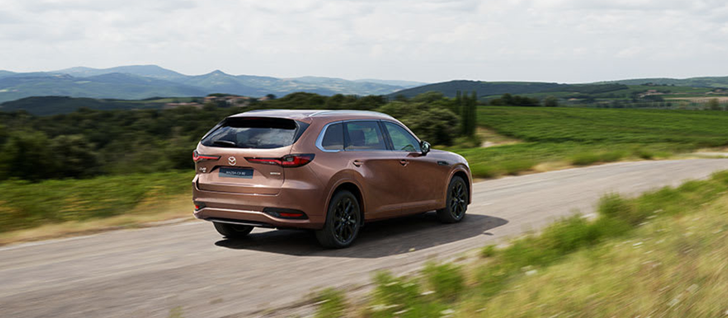 La silhouette pura e raffinata è messa in risalto dalle sinuose linee scolpite e dalle audaci modanature cromate dei finestrini, che sottolineano il senso di movimento di Mazda CX-80, anche da ferma.