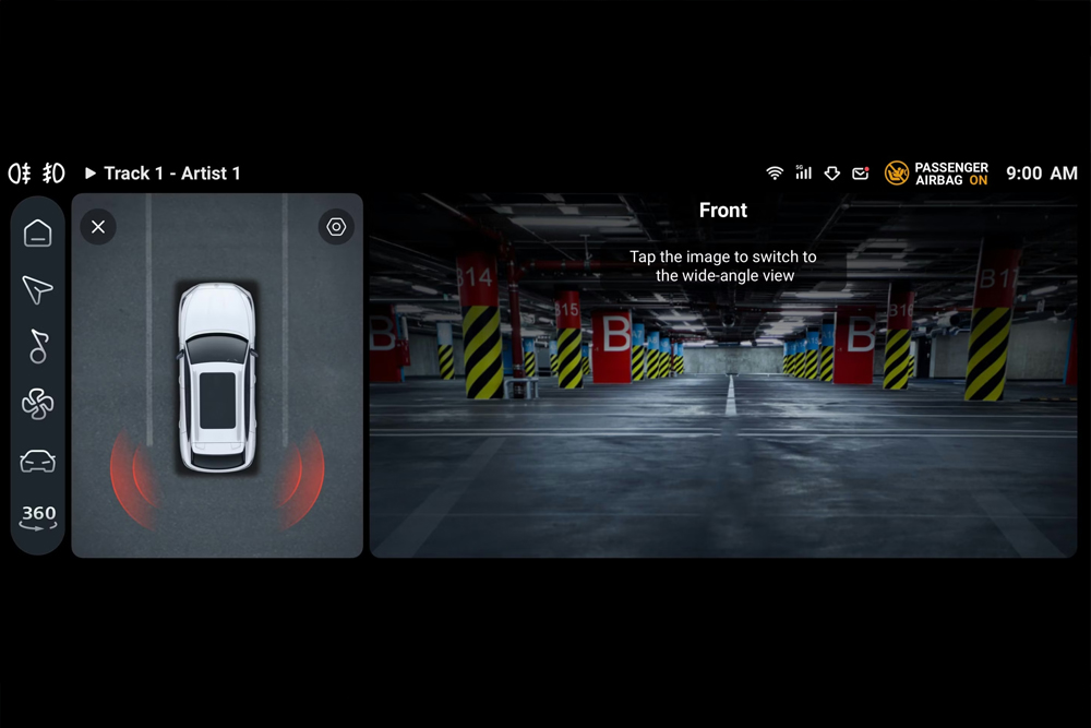 I parcheggi e le strade strette non sono un problema con la telecamera a 360°. Quattro telecamere grandangolari HD offrono una visione a 360°, mentre i sensori a ultrasuoni segnalano la presenza di ostacoli. Inoltre, il sistema di assistenza in retromarcia dinamica vi aiuta a parcheggiare con l'angolazione perfetta.