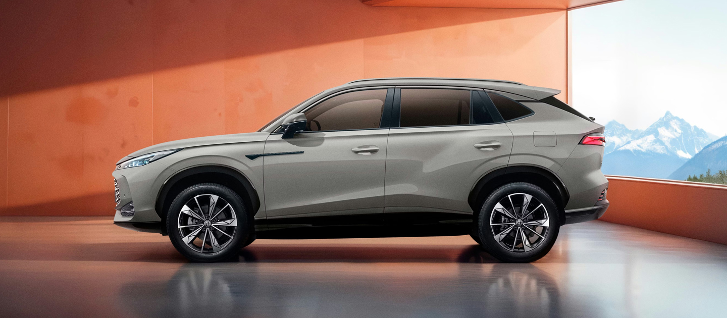 Il design del profilo laterale conferisce al veicolo un senso di forza, mentre il montante flottante accentua la linea dinamica del tetto. Grazie all'ampia griglia sormontata da fari a LED affilati e all'avanguardia, la Nuova MG HS Hybrid+ affascina con la sua personalità.