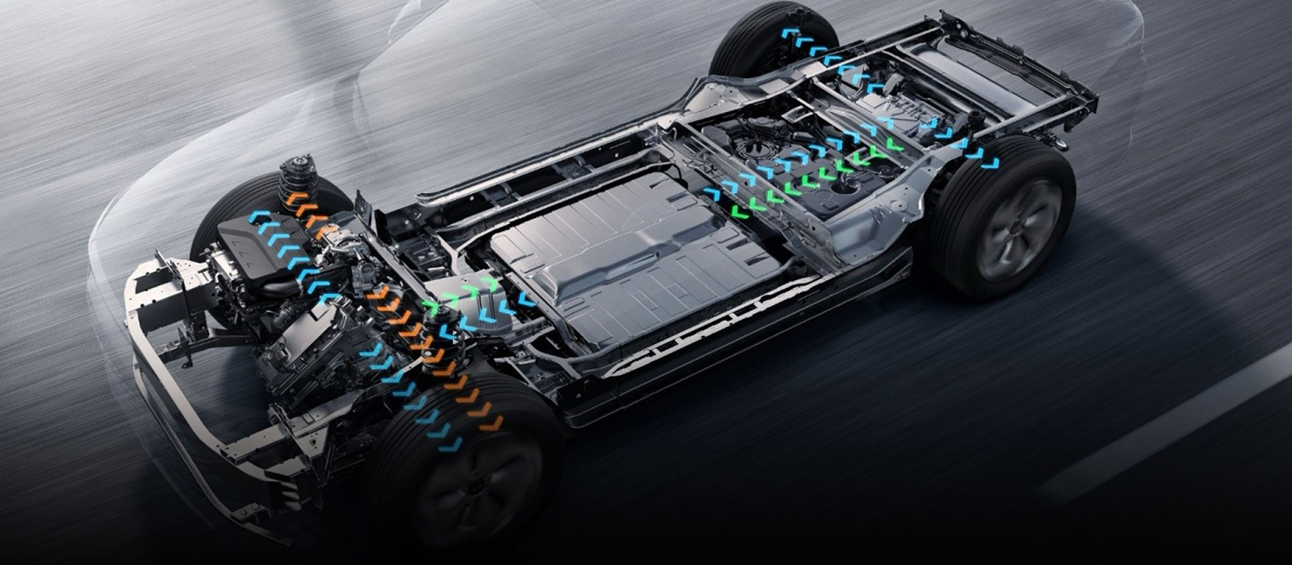 Una versione potenziata del sistema Super Hybrid, abbinata alla trazione integrale adattiva: la distribuzione della coppia privilegia l’asse posteriore per una migliore guidabilità. Doppio motore elettrico all’anteriore, potente motore elettrico al posteriore, efficientissimo 1.5 TGDi benzina ciclo Miller, batteria CATL da 34,5 kWh e serbatoio da 70 litri.